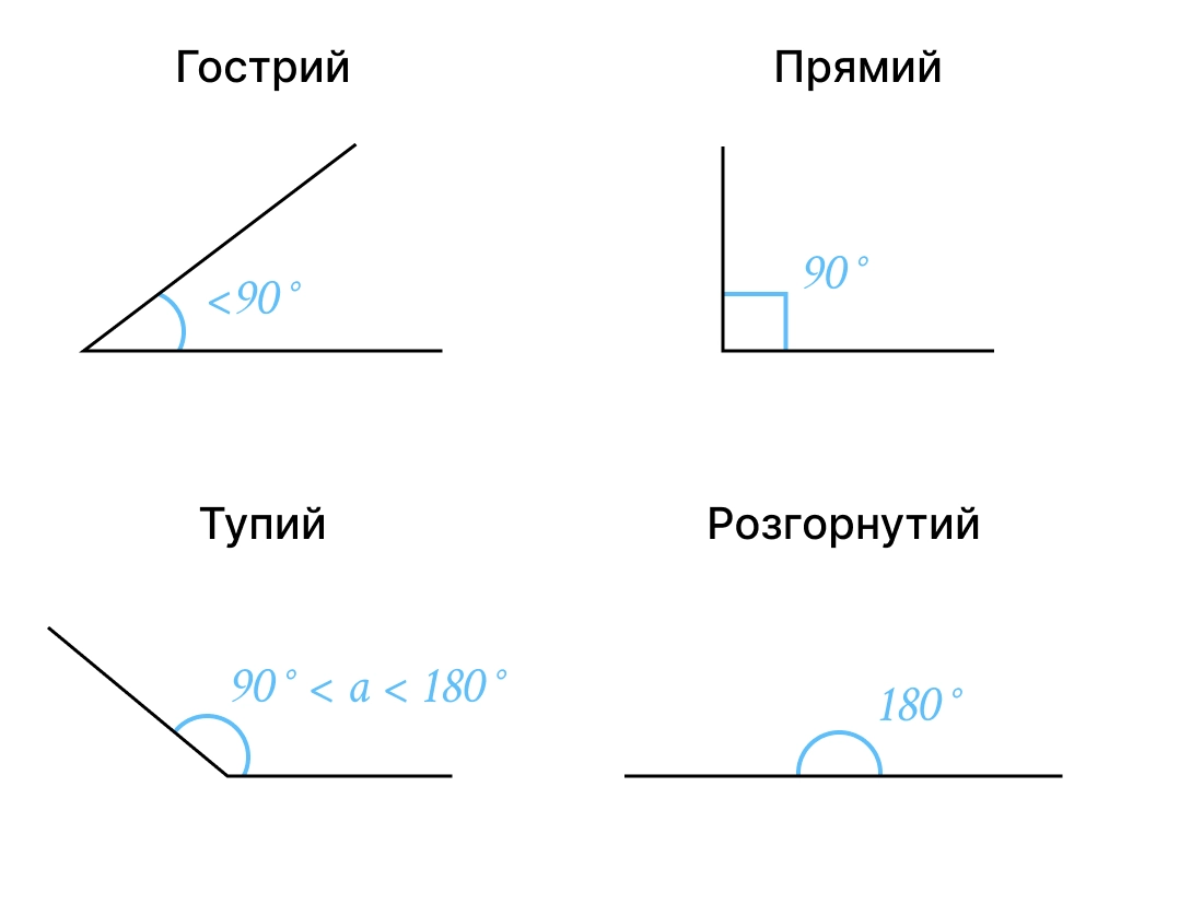 Вид кута | Градусна міра |