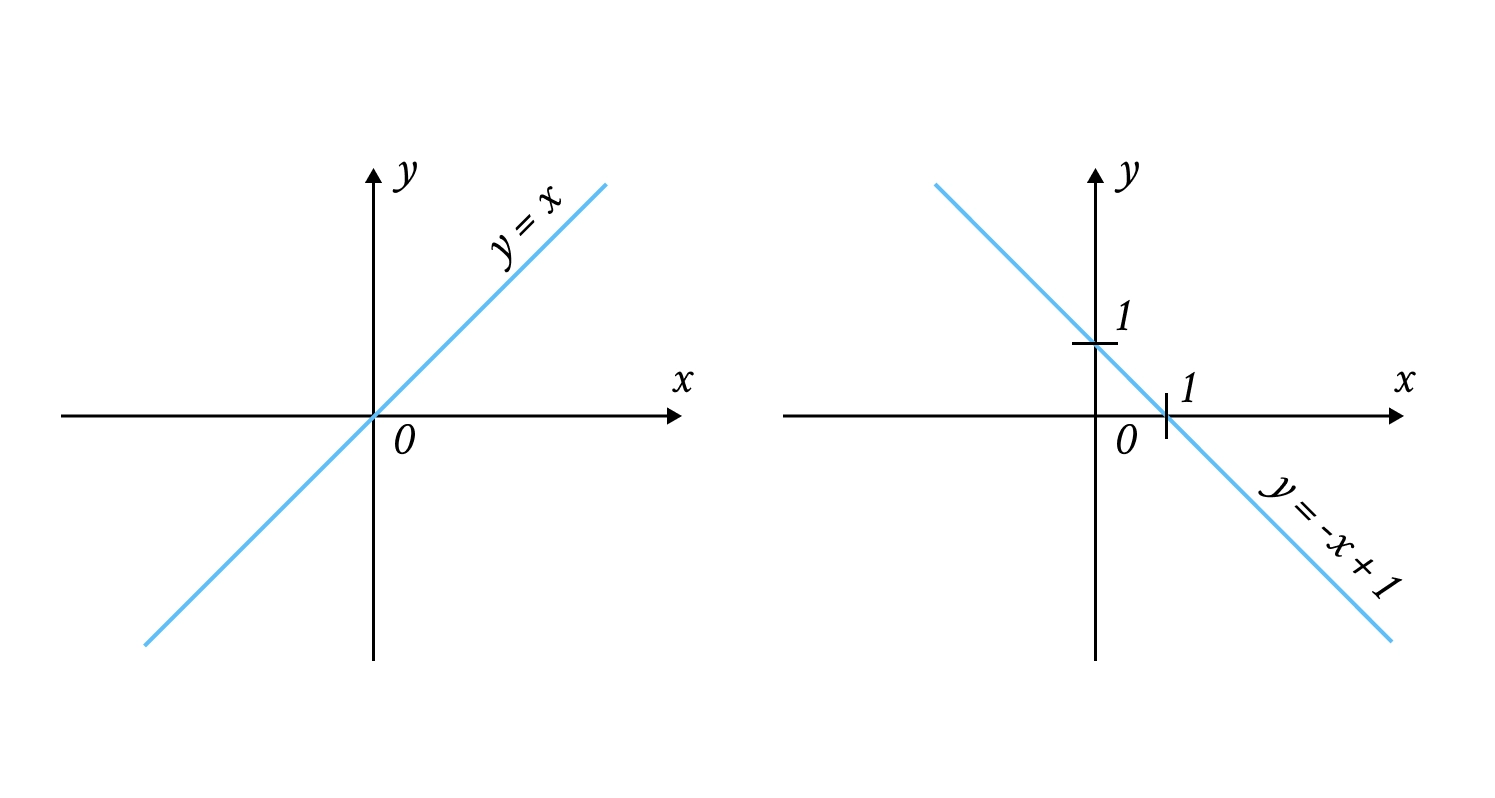 Лінійна функція (): Графіком є пряма лінія. Коефіцієнт (кутовий коефіцієнт) відповідає за нахил: при функція зростає, при — спадає.